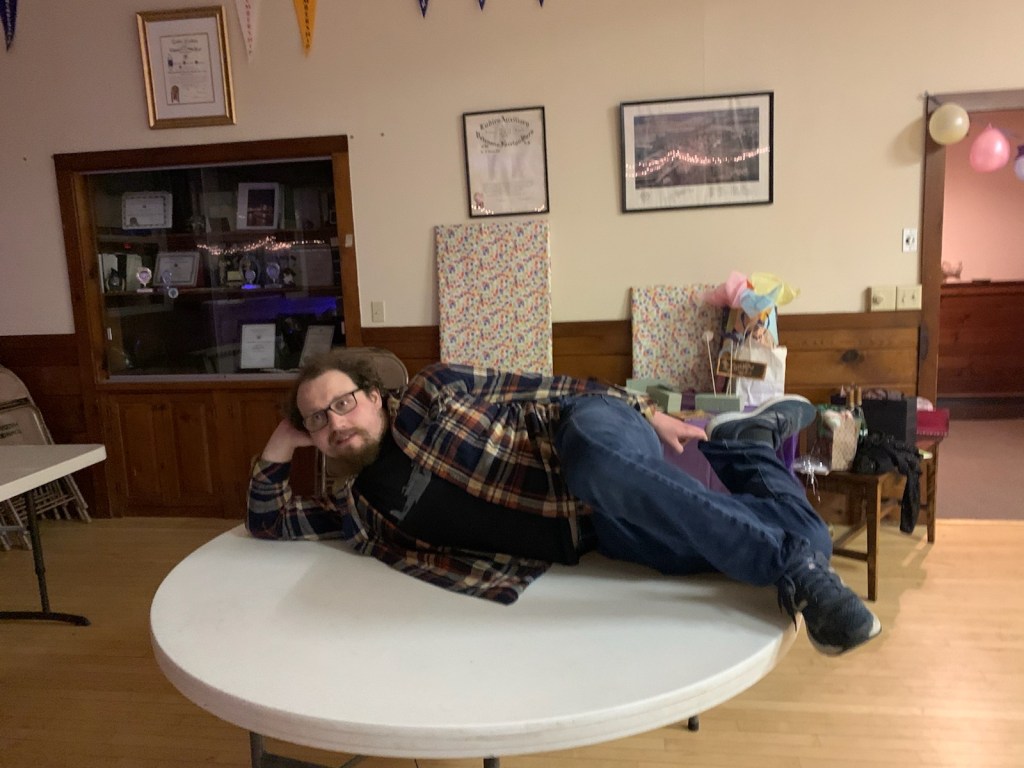 His friend joked that someone must’ve spiked the prune juice. He did say he could see their big boots peeking out from under the curtains, “They should start soon.”