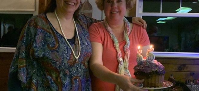 Both my husband’s cousin Hollyann and I decided we’d embrace turning 55 this February by throwing ourselves a silly birthday party. We needed fun. We wanted to defy aging. It’s just a number, we reasoned. But I went further. “55 is double nickels and 5 +5 =10. Let’s be 10-year-olds with a ten-year-old theme.”