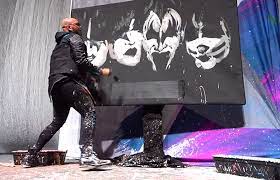 He painted three very large murals, very quickly as he engaged the audience. One was of Alice Cooper, the other the Statue of Liberty, and the third, a mural of Kiss, to be signed by the band. This piece was to be raffled off on an on-line fund raiser to benefit families of fallen soldiers. Sean entered. “Wouldn’t this go great over our bed, honey?”