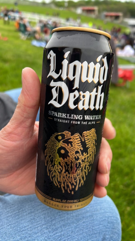 Since both of us are counting calories, we decided not to have booze, though in hindsight, I think it might’ve helped. Instead, we sipped well-marketed sparkling water called, “Liquid Death” for $5 a piece.