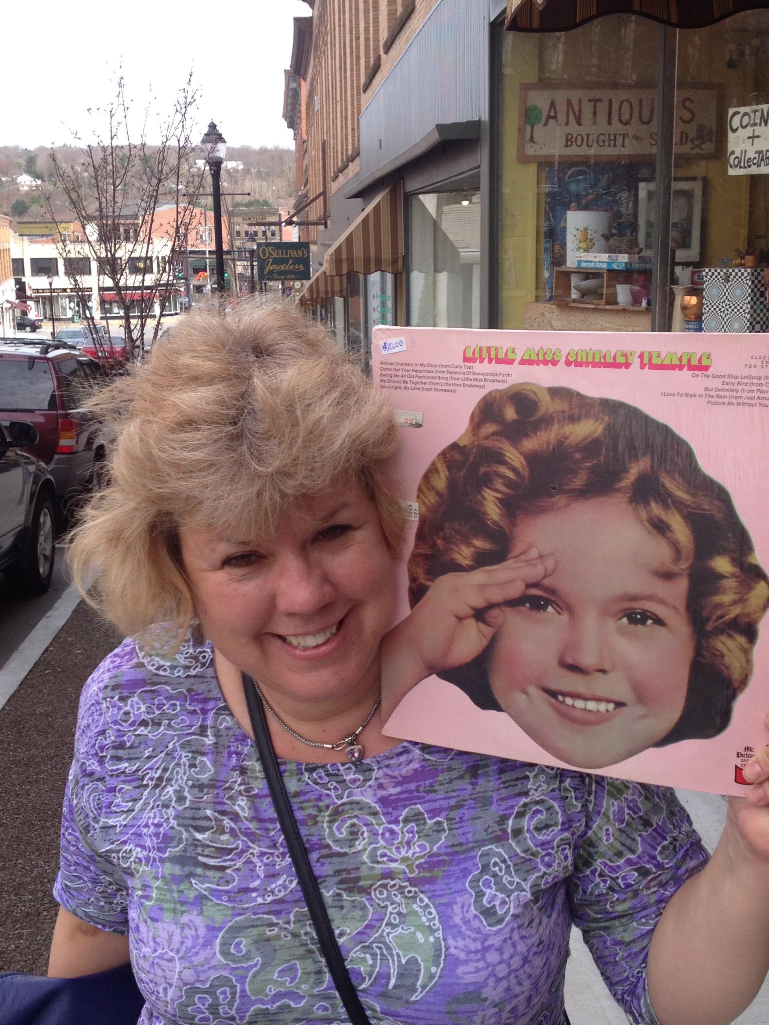 The very next day, Sean and I were on our way to Torrington to see Shirley MacLaine who was performing a monologue at the Webster Theater across the street. I told him my conversation with our niece and my quest to find THE Shirley Temple album of my childhood. Before the show, we strolled the 1950s style Main Street in Torrington. As fate would have it, or Shirley-shamanism, we took a side street for some “random” reason. At the top of the street was an old, dusty secondhand shop.
